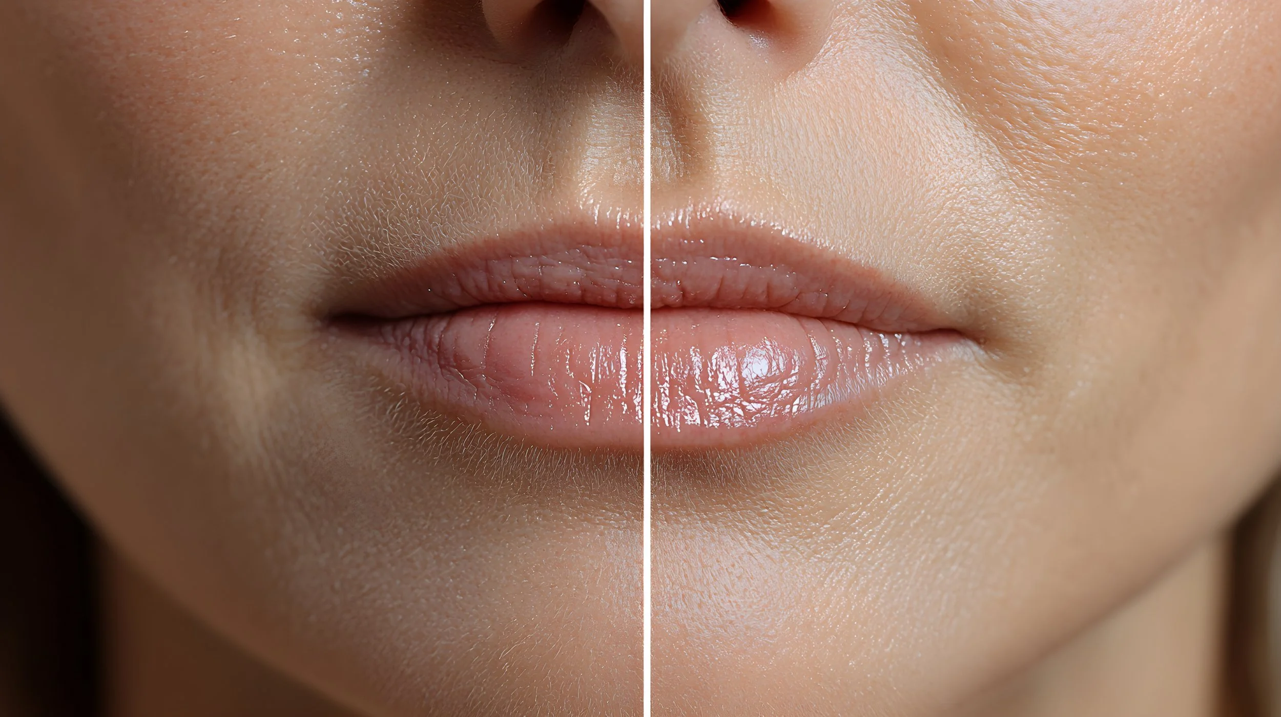 Lip flip relaxes the muscles around the lips, causing the upper lip to roll slightly outward, creating the appearance of a fuller lip without adding volume. Can last 4-8 weeks.